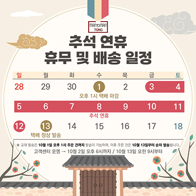 · 10월 1일 오후 1시 이후 주문 시 → 10월 13일부터 순차 발송